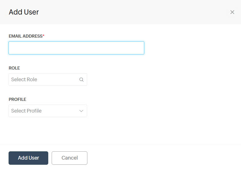 - Nhập email muốn invite, Chọn Role và profile (tùy ý, sẽ chỉnh lại sau)
